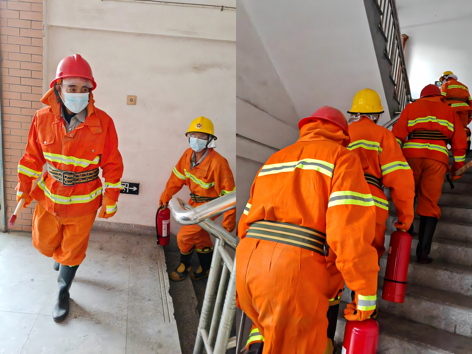 根據消防應急演練方案要求,設置疏散引導組,負責疏散著火層、相鄰層相關人員至安全地點,救援組持消防斧和滅火器逆行營救。